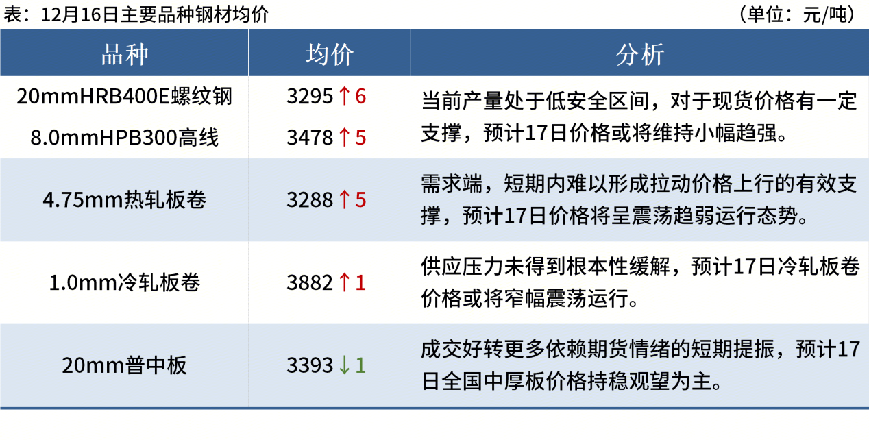◎12月16日,全國主港鐵礦石成交101.40萬噸,環(huán)比增18.2%;237家主流貿(mào)易商建筑鋼材成交9.92萬噸,環(huán)比減2%。