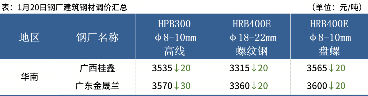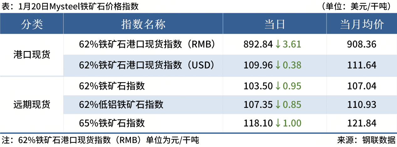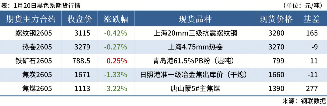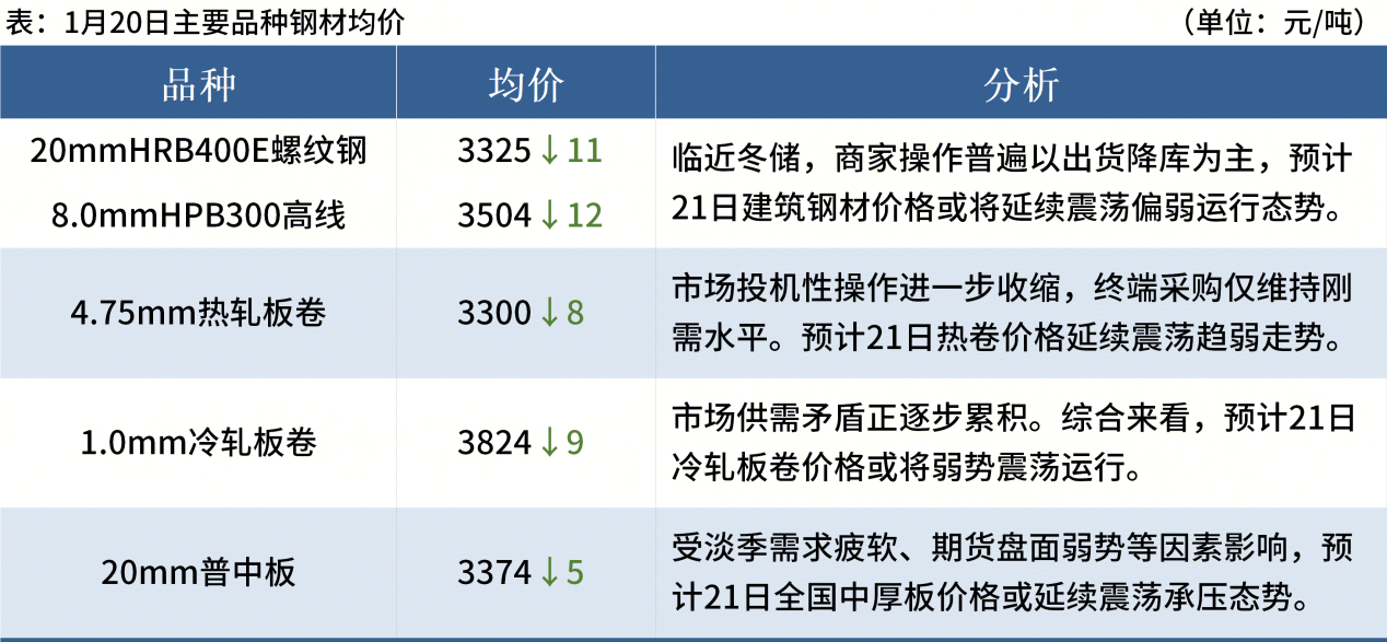 ◎ 1月20日,全國主港鐵礦石成交116.50萬噸,環(huán)比減2.4%;237家主流貿(mào)易商建筑鋼材成交7.80萬噸,環(huán)比減8.4%。