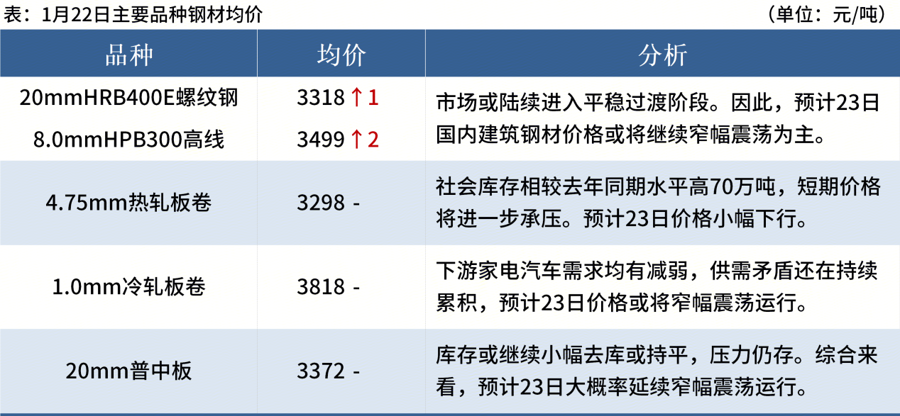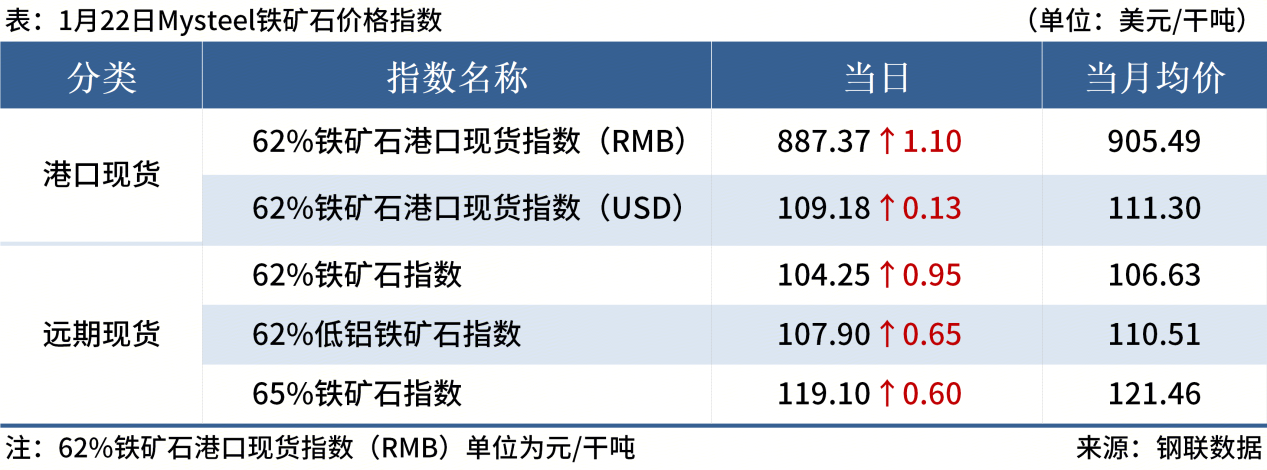 ◎ 1月22日,全國(guó)主港鐵礦石成交91.30萬(wàn)噸,環(huán)比增12.4%;237家主流貿(mào)易商建筑鋼材成交7.15萬(wàn)噸,環(huán)比減6.3%。